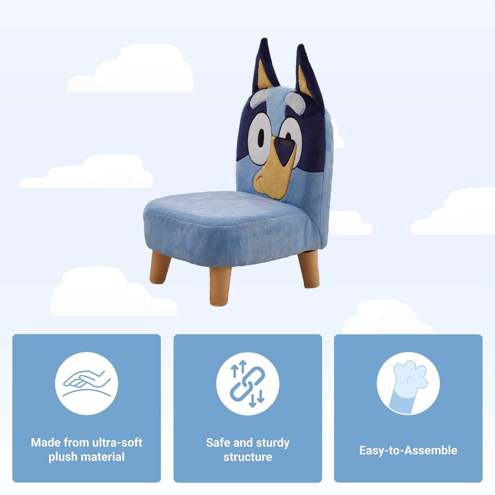 - Delight little fans with this Bluey kids plush chair, featuring the beloved character's face, perfect for bedrooms, playrooms, or nurseries.