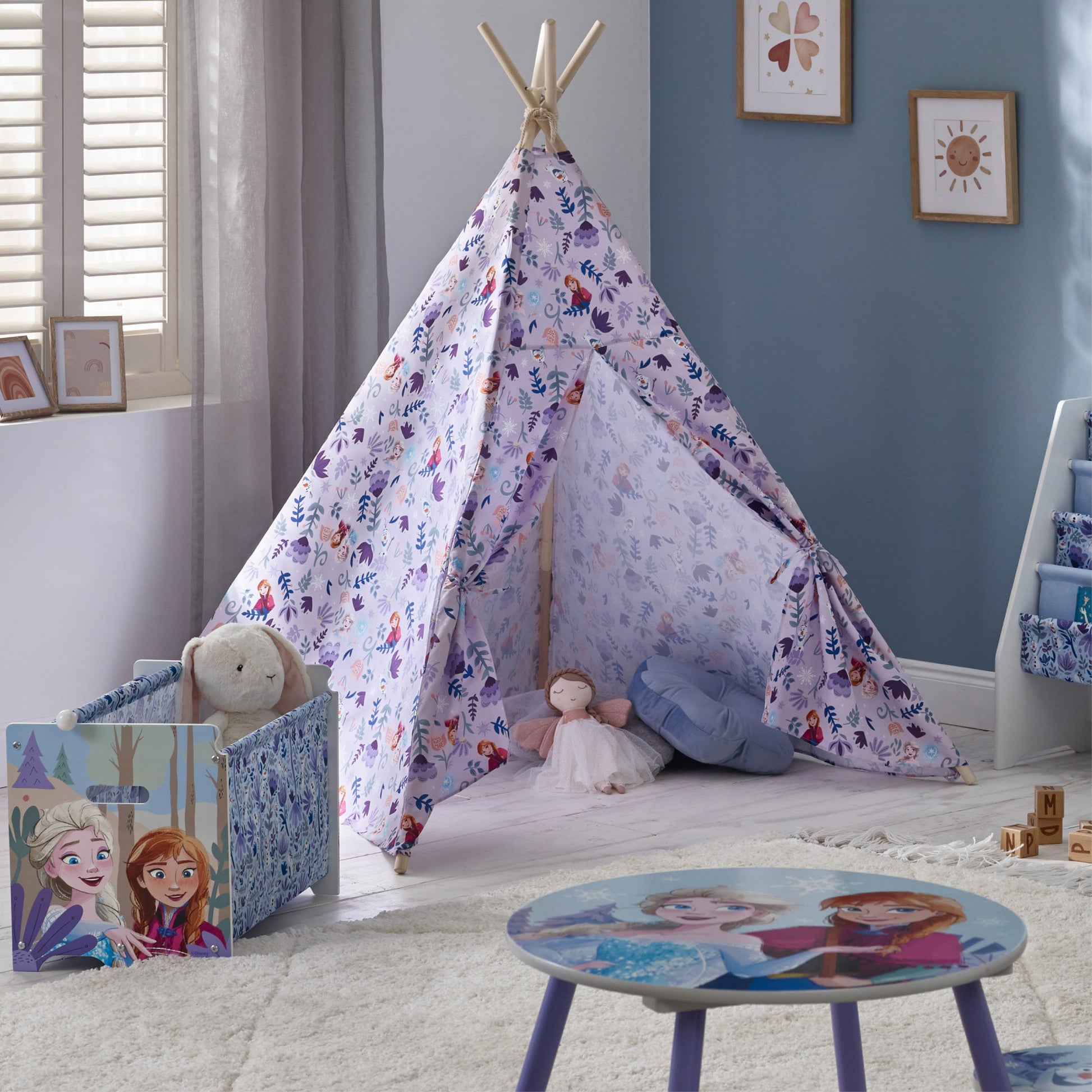 Bring Arendelle Home with this Disney Frozen kids' teepee tent. Perfect for indoor play, it features beloved characters like Elsa and Anna. Easy to assemble, durable, and compact—ideal for bedrooms and playrooms.