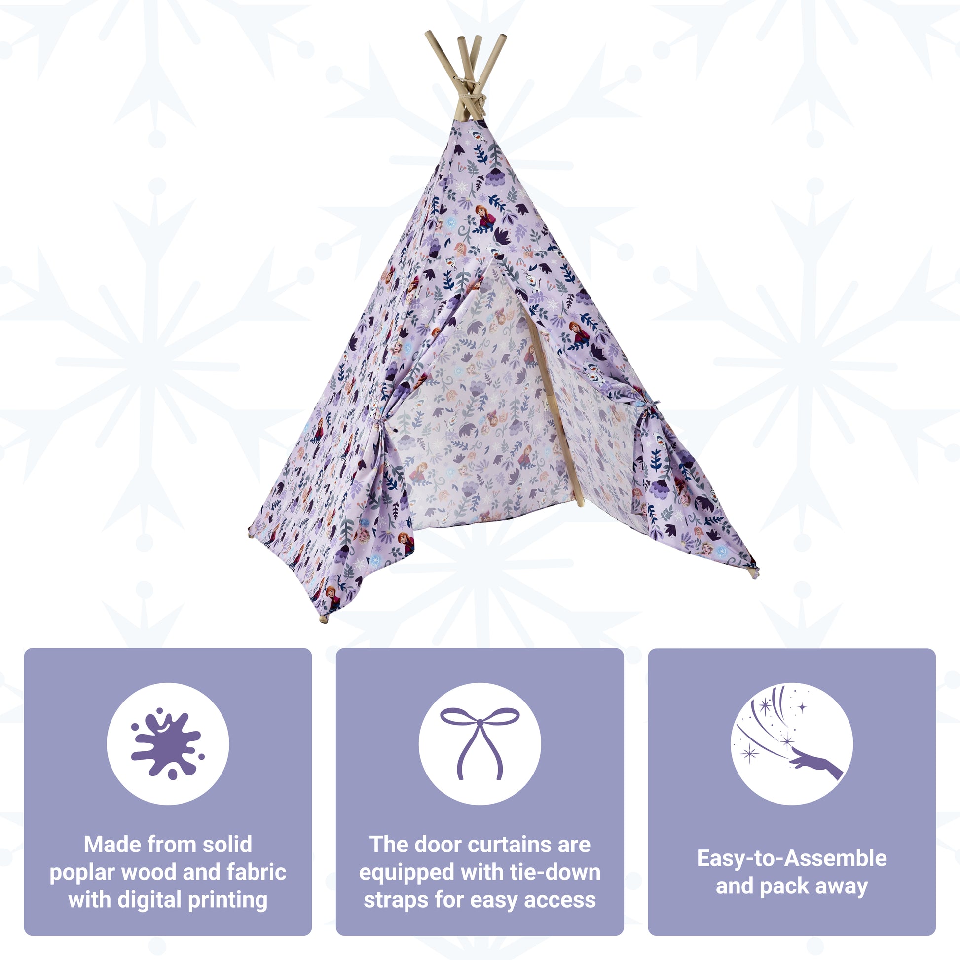- Quick & Easy Setup: Enjoy hassle-free assembly with simple instructions. This Frozen-themed teepee tent is easy to set up and dismantle, making it ideal for creating an instant play area in any room. Please note that it does not come with a play mat.