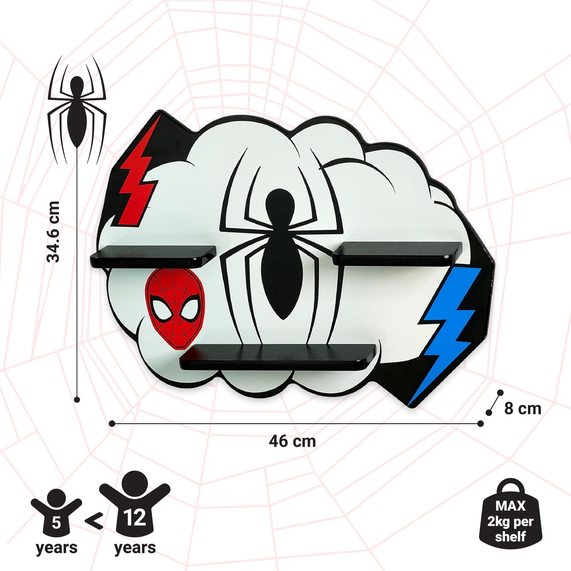 - Swing into action with our Spider-Man wall shelf. Featuring the iconic hero, it adds excitement to any room while providing practical storage for toys and books.