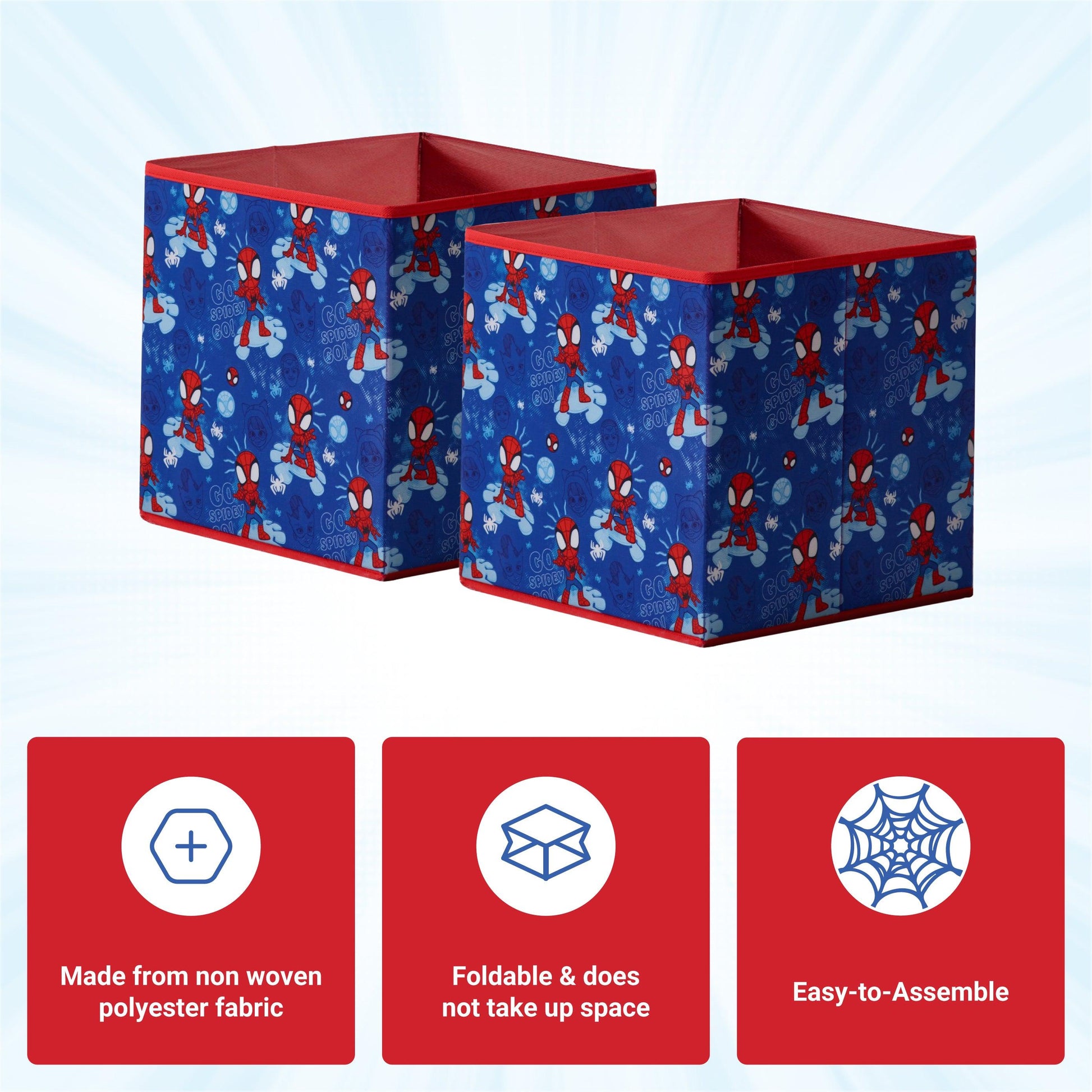 - Add a pop of colour to any room with this bright blue and red fabric storage boxes featuring Marvel Spidey and His Amazing Friends, a must-have for any young Marvel fan's bedroom or playroom.